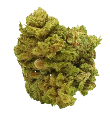 Este despliegue de color se complementa con una abundante capa de tricomas cristalinos, que dan a la flor un aspecto escarchado y brillante bajo la luz. Los pistilos, que van del naranja al rojo oscuro, se entrelazan con los cogollos, añadiendo un contraste visual que realza aún más su belleza.